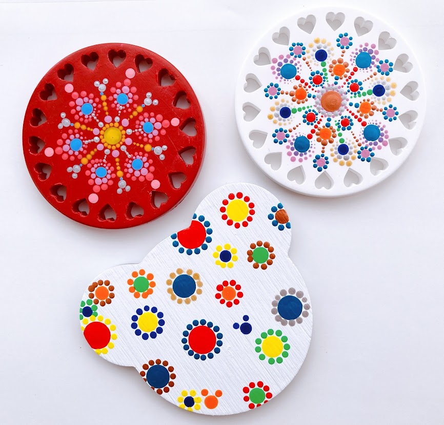 曼荼羅ドットアートは、ドット専用の道具と絵の具を使って、ドット(点)を幾何学模様に作り出すアートです。絵心もなく、上手下手もなく、美的感覚がなくても、誰でも簡単に好きな時間に、ゆっくりリラックスできて癒しの時間を過ごせます。